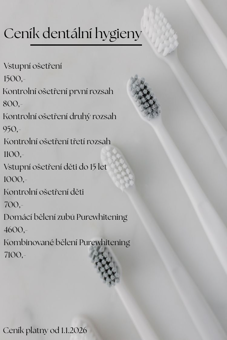 Návštěva dentální hygienistky je vhodná jako prevence zubního kazu i parodontózy. Pomůžeme Vám udržet Vaše zuby zdravé a krásné. Nabízíme: